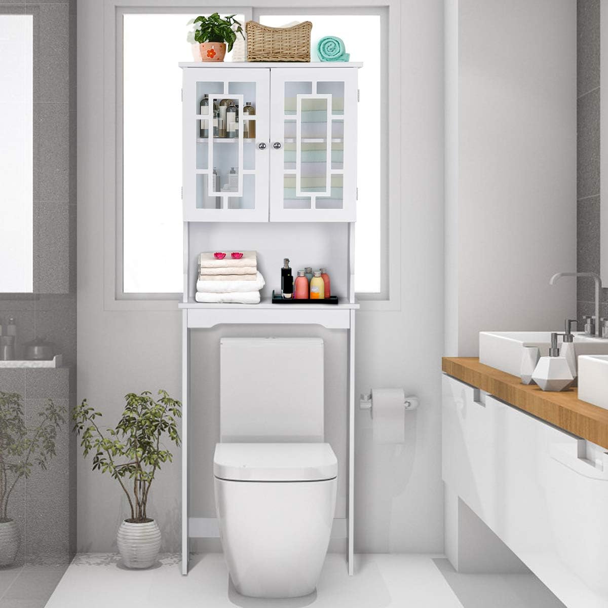 COSTWAY Estantería para Inodoro WC con 3 Estantes y 2 Puerta, Mueble de Baño de Madera Mueble Alto de Almacenamiento sobre Lavadora