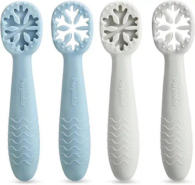 - 【 Fácil de mascar suave】 Suave en las gomas de bebé y las sensaciones agradables de silicona permiten que su bebé coma. Las cucharas ayudan a aliviar la ansiedad del bebé debido a las encías doloridas durante el conocedor de los niños.