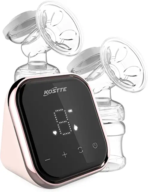 Sacaleches Doble Electrico, Múltiples Modos y Niveles de Succión, Portátil Pantalla Táctil Sensible LED, Recargable Bomba de Lactancia (Brida de 24mm & 27mm).
